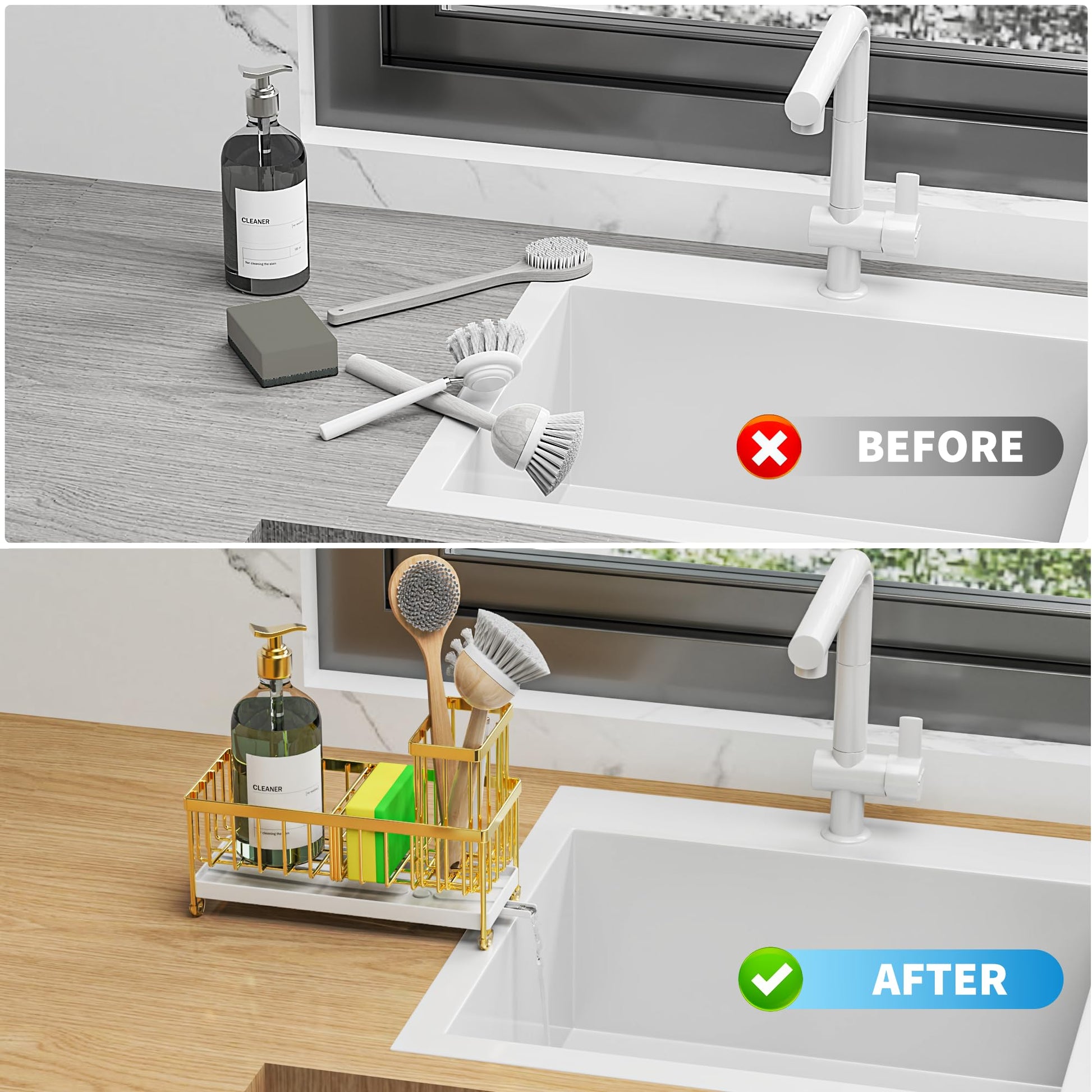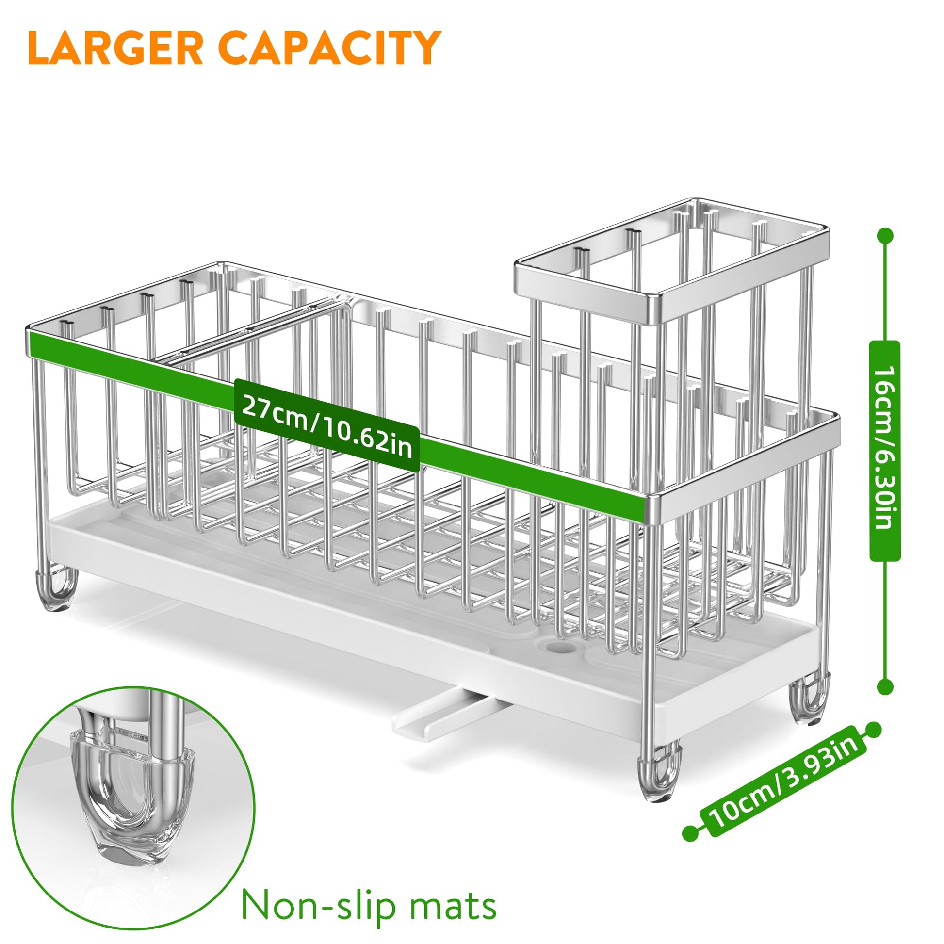 - 【PREMIUM STURDY MATERIAL】 Cisily kitchen sink organizer is made of premium stainless steel which can effectively prevent rust and deformation. And you can clean it easily by rinsing it under a running tap. Take the clutter out of your countertops.