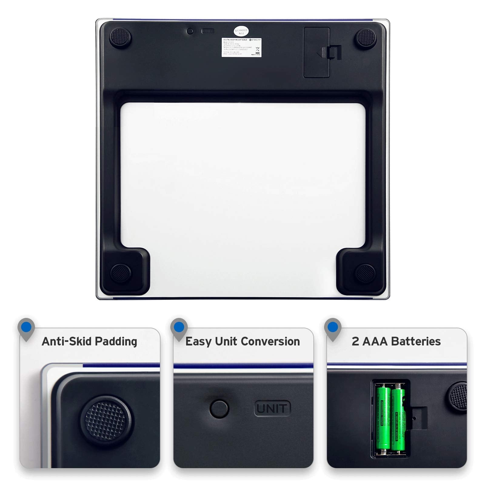 - π¨ π«ππππππ πͺπππππ: The scaleβs 6-mm tempered glass platform provides exceptional durability and comfort. Equipped with a supportive frame and anti-skid paddings to prevent slipping, you can rely on the sturdiness of our scale