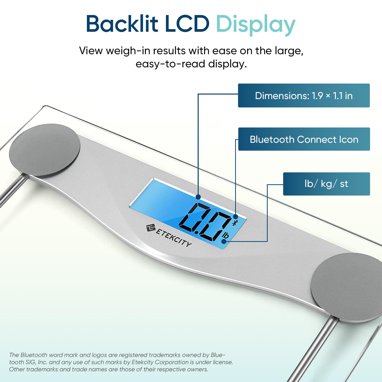 Etekcity Digital Body Weight Bathroom Scale, Large Blue LCD Backlight Display, High Precision Measurements,6mm Tempered Glass, 400 Pounds