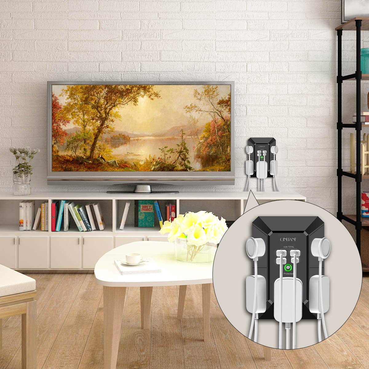 - 【The Groove Design on The Back and Wide space 】- 5 AC outlets with 2.1 inches long space in between, larger than standard 1.5-inch socket. Larger spacing makes it easier to use for all kinds of equipment. The groove at the back make it flush against the wall perfectly, good for all Duplex Receptacle Outlet. NOTE: This product can be used on wall outlet with space lager than 1 inches in between ,This product cannot be used on outlets with more than 2 set of parallel sockets.